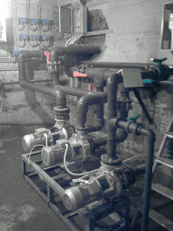 Трубопроводная арматура с форсунками в смонтированной чаше фонтана